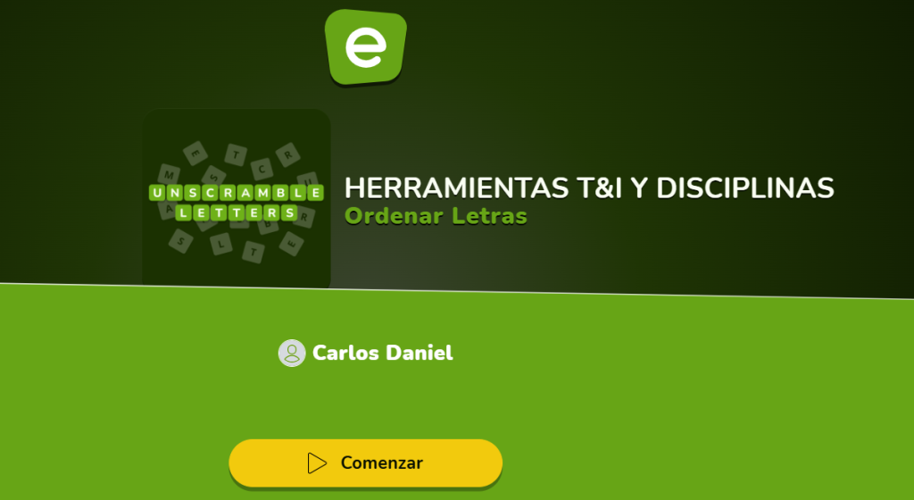 Empleando Ordenar Letras, el estudiante activa conceptos sobre Herramientas TI: